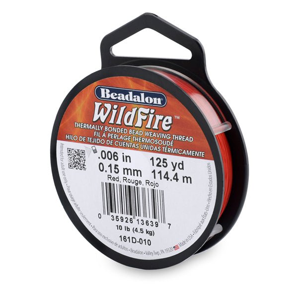 Red Wildfire beading thread has a thermally bonded coating for easy stringing. It is strong, durable, smooth, waterproof, colorfast, does not fray with a next to zero stretch. Great for beading, bracelets, necklaces, loom-work, and multiple strand bead designs. USA Made.