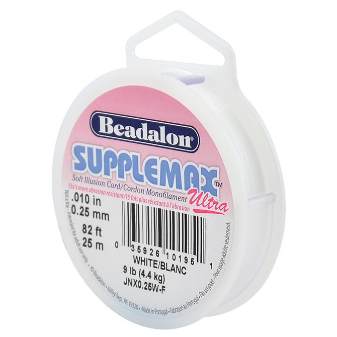 Soft White Monofilament European Cord/Thread made specifically for Beadalon. Extra soft, supple and 15x the abrasion resistance of most nylon beading materials. For beading, bracelets, necklaces, jewelry, and other crafting projects. Made in the USA.