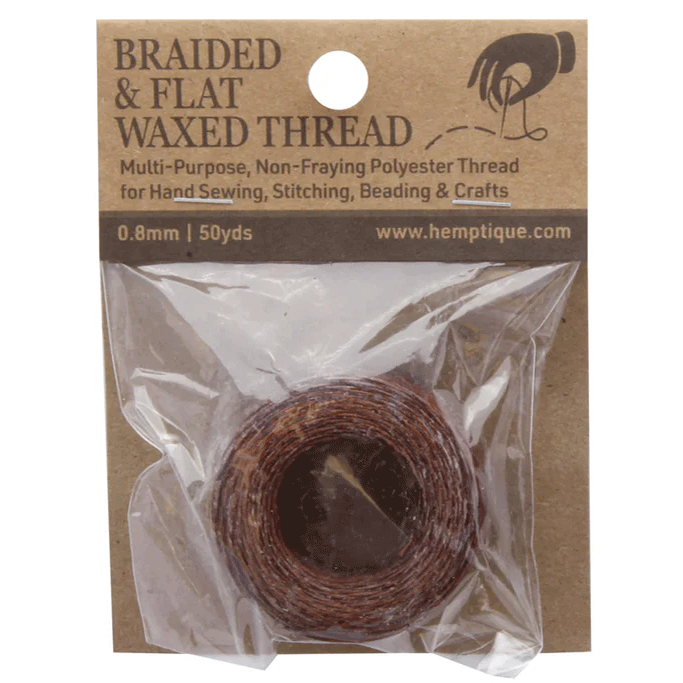 This Dark Brown colored thread is made from high-tenacity polyester fibers which are braided, non-fraying, waxed and very strong.. For indoor or outdoor fabric repairs of canvas awnings, boat covers and furniture upholstery. Also for leather stitching, book binding, bracelets, beading, crafts and more.