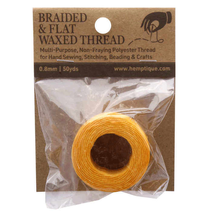 This gold-colored thread is made from high-tenacity polyester fibers which are braided, non-fraying, waxed, and very strong.. For indoor or outdoor fabric repairs of canvas awnings, boat covers, and furniture upholstery. Also for leather stitching, bookbinding, bracelets, beading, crafts, and more.