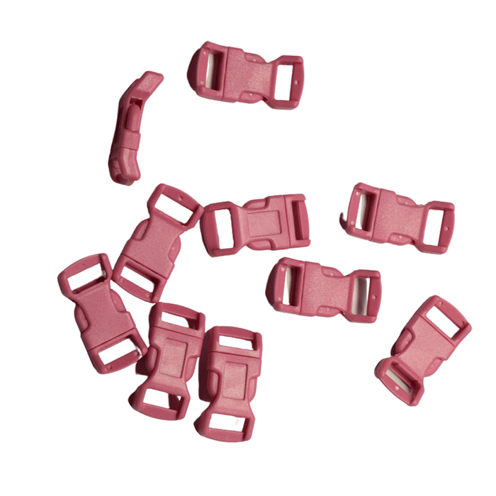 Pink 1/2" Curved Side Release Plastic Buckles. Easy release and locks securely. For paracord survival bracelets and other corded or webbing straps requiring a buckle. (10 pack).