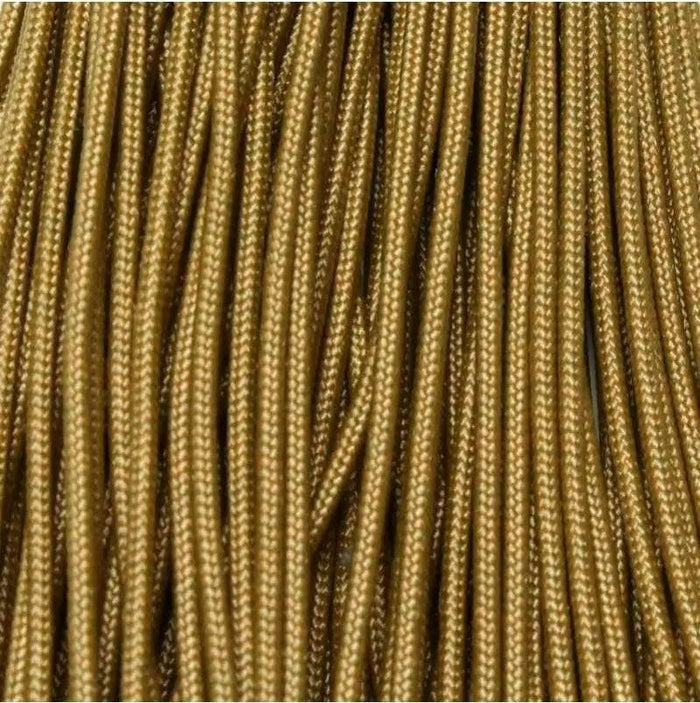 Gold. This is a 275 tactical paracord which is soft, lightweight, pliable, strong and durable. For bracelets, key chains, lanyards, belts, slings, hammocks, shoe laces, gear repairs, survival bracelets, camping, everyday carry, crafting, and household uses.