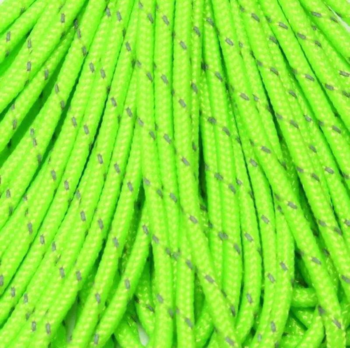 Reflective Neon Green. 275 Tactical paracord is soft, lightweight, pliable, strong and durable. For bracelets, key chains, lanyards, belts, slings, hammocks, shoe laces, gear repairs, survival bracelets, camping, everyday carry, crafting, and household uses.