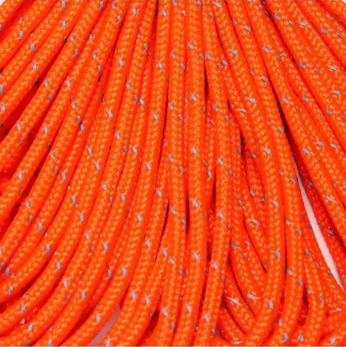Reflective Neon Orange. 275 Tactical paracord is soft, lightweight, pliable, strong and durable. For bracelets, key chains, lanyards, belts, slings, hammocks, shoe laces, gear repairs, survival bracelets, camping, everyday carry, crafting, and household uses.