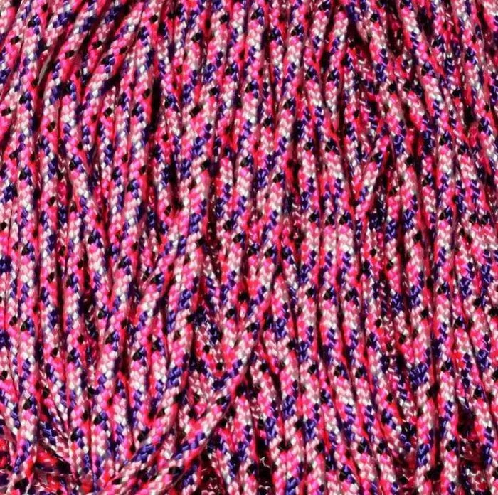 Country Girl Camo (pink, white, purple and black). This is a 325-3 paracord which is soft, lightweight, pliable, strong and durable. For bracelets, key chains, lanyards, belts, slings, hammocks, shoe laces, gear repairs, survival bracelets, camping, everyday carry, crafting, and household uses.