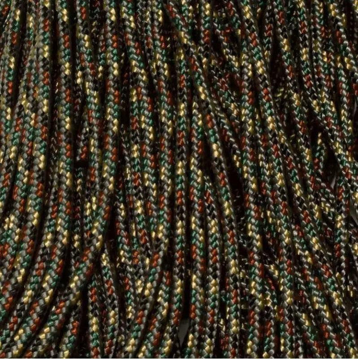 Camo Pattern (rust, black, tan and olive drab). This is 425 paracord which is strong, soft, smooth, and pliable. For key chains, lanyards, belts, slings, hammocks, shoe laces, gear repairs, bracelets, camping, everyday carry, survival gear, crafting and household uses.