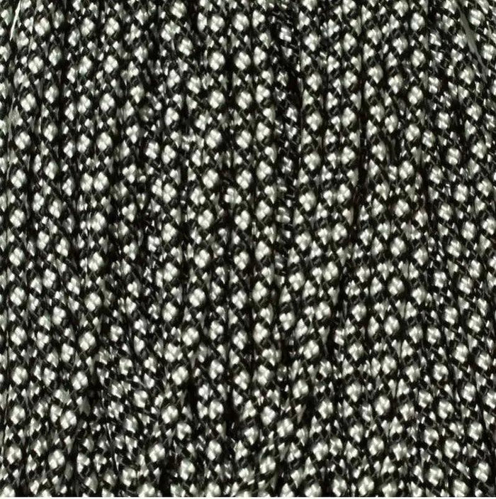 Black With Silver Gray Diamonds. This is 425 paracord which is strong, soft, smooth, and pliable. For key chains, lanyards, belts, slings, hammocks, shoe laces, gear repairs, bracelets, camping, everyday carry, survival gear, crafting and household uses.