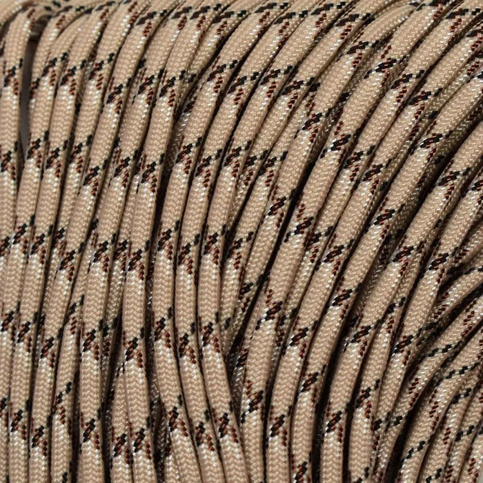 Desert Camo Pattern (Special-tan 380, rust, white and black). This is type III 550 paracord which is strong, soft, smooth, and pliable. For key chains, lanyards, belts, slings, hammocks, shoe laces, gear repairs, survival bracelets, camping, everyday carry survival gear, crafting and household uses.