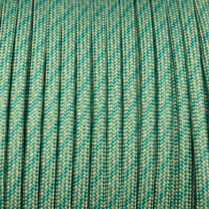 Cream with Turquoise (Helix). This is type III 550 paracord which is strong, soft, smooth, and pliable. For key chains, lanyards, belts, slings, hammocks, shoe laces, gear repairs, survival bracelets, camping, everyday carry survival gear, crafting and household uses.