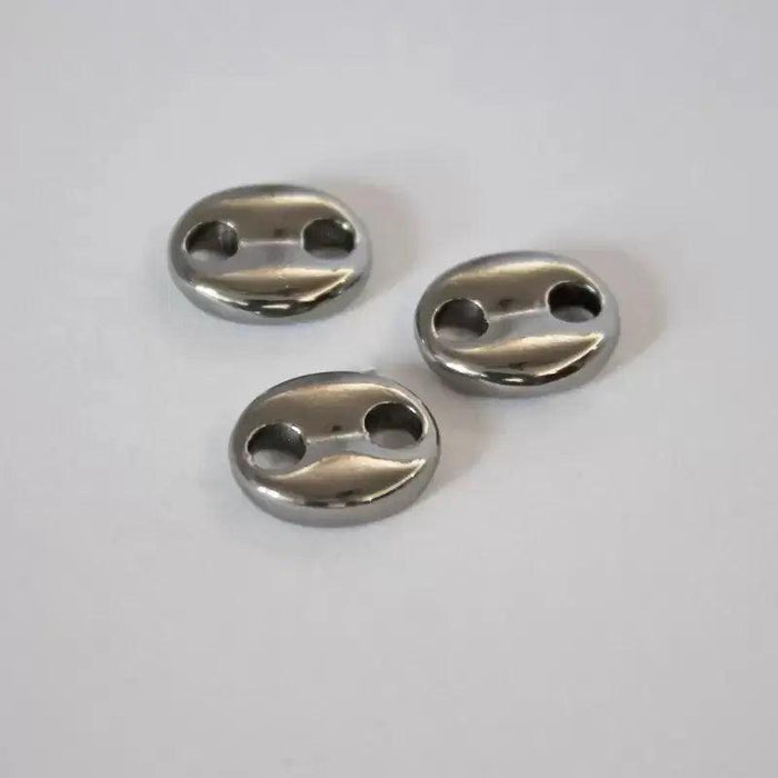 Stainless steel coffee bean shaped clasp. Hole size: 2.5mm. Pictured with Type 1 or 95 paracord.