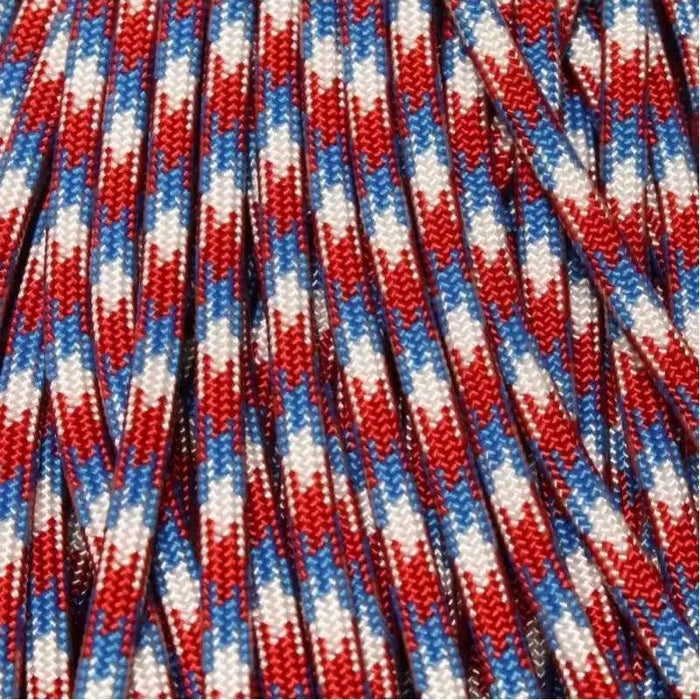 Liberty (imperial red, white and colonial blue). This is type III 550 paracord which is strong, soft, smooth, and pliable. For key chains, lanyards, belts, slings, hammocks, shoe laces, gear repairs, survival bracelets, camping, everyday carry, survival gear, crafting, and household uses.
