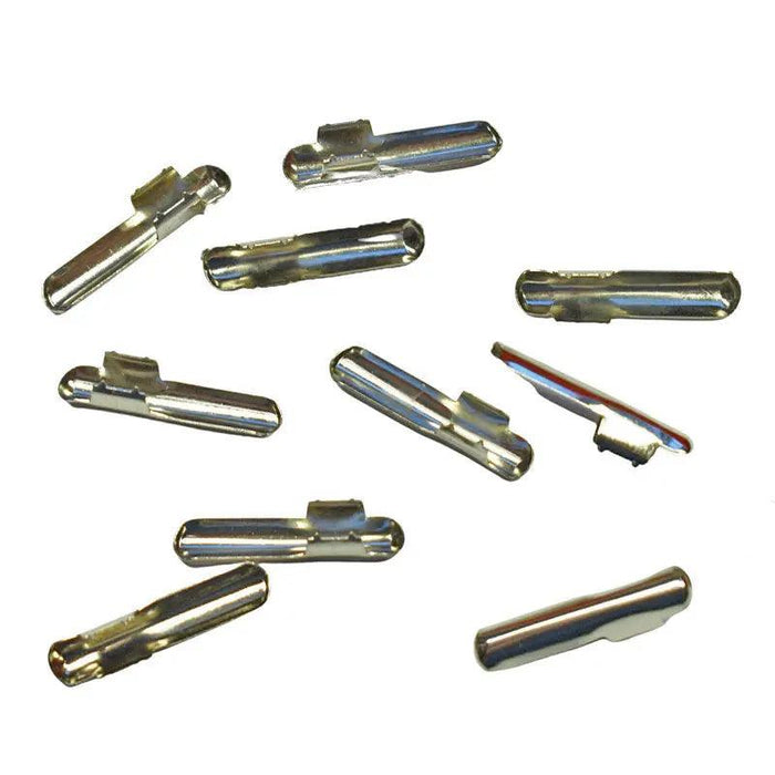 Metal aglet barbs are used to secure the ends of elastic or regular cords.