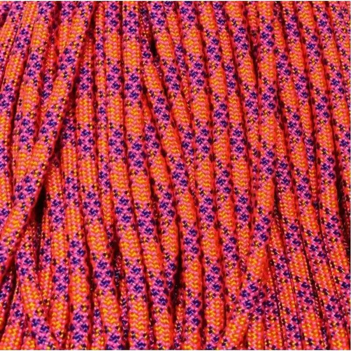 Tropical Sunset (rose and neon pinks, neon orange and acid, purple). This is type III 550 paracord which is strong, soft, smooth, and pliable. For key chains, lanyards, belts, slings, hammocks, shoe laces, gear repairs, survival bracelets, camping, everyday carry survival gear, crafting and household uses.