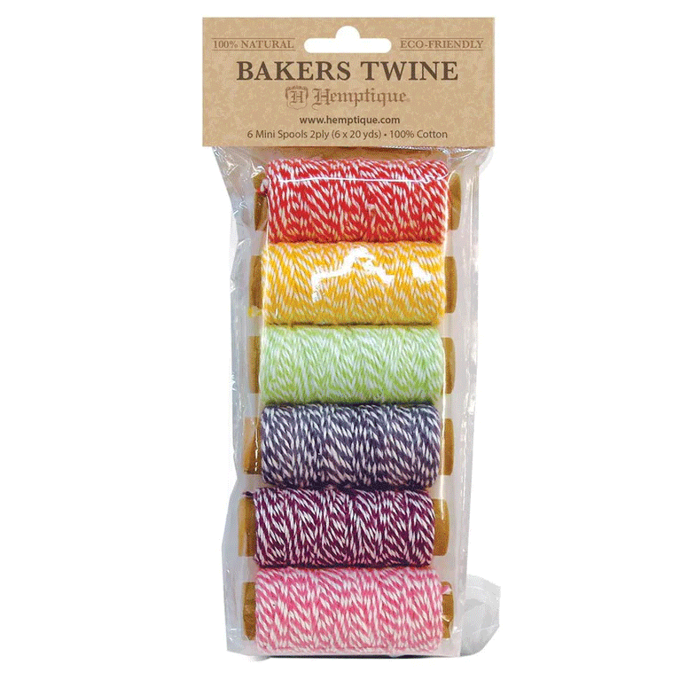 Rainbow Bakers Twine or Cord. This premium cotton colorfast twine is biodegradable, environmentally friendly, uses AZO- free dye and is oil free. For jewelry, necklaces, beading, bracelets, dream catchers, string art, scrapbooking, tying or gift wrapping packages, tiny pom-poms, macramé, crocheting and crafting projects or accessorizing.