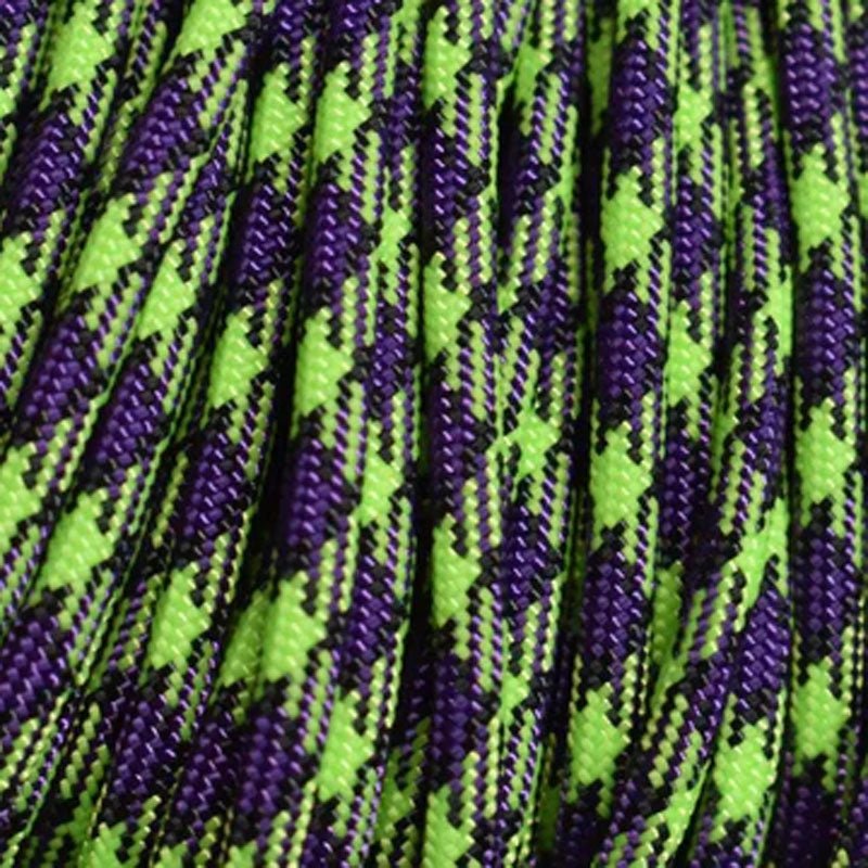 Zombie (neon green, purple and black). Type III 550 paracord is soft, lightweight, pliable, strong and durable. For bracelets, key chains, lanyards, belts, slings, hammocks, shoe laces, gear repairs, survival bracelets, camping, hiking, everyday carry, crafting, and household uses.